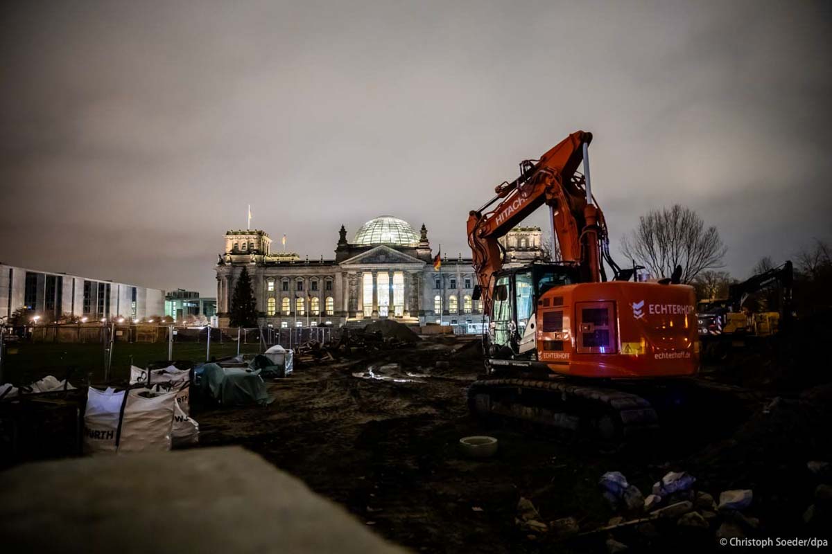 A digger in front of the Reichstag building
