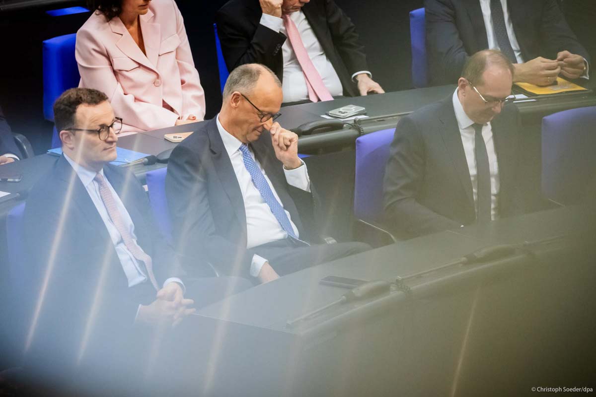 Newly elected Federal Chancellor Friedrich Merz (CDU) takes his seat on the government bench in the Bundestag after being sworn in.