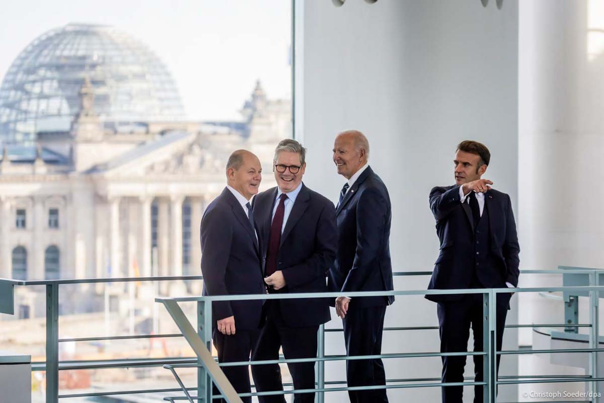 Quad meeting between German Chancellor Olaf Scholz (l-r) British Prime Minister Keir Starmer, US-President Joe Biden and French President Emmanuel Macron at the Chancellery in Berlin