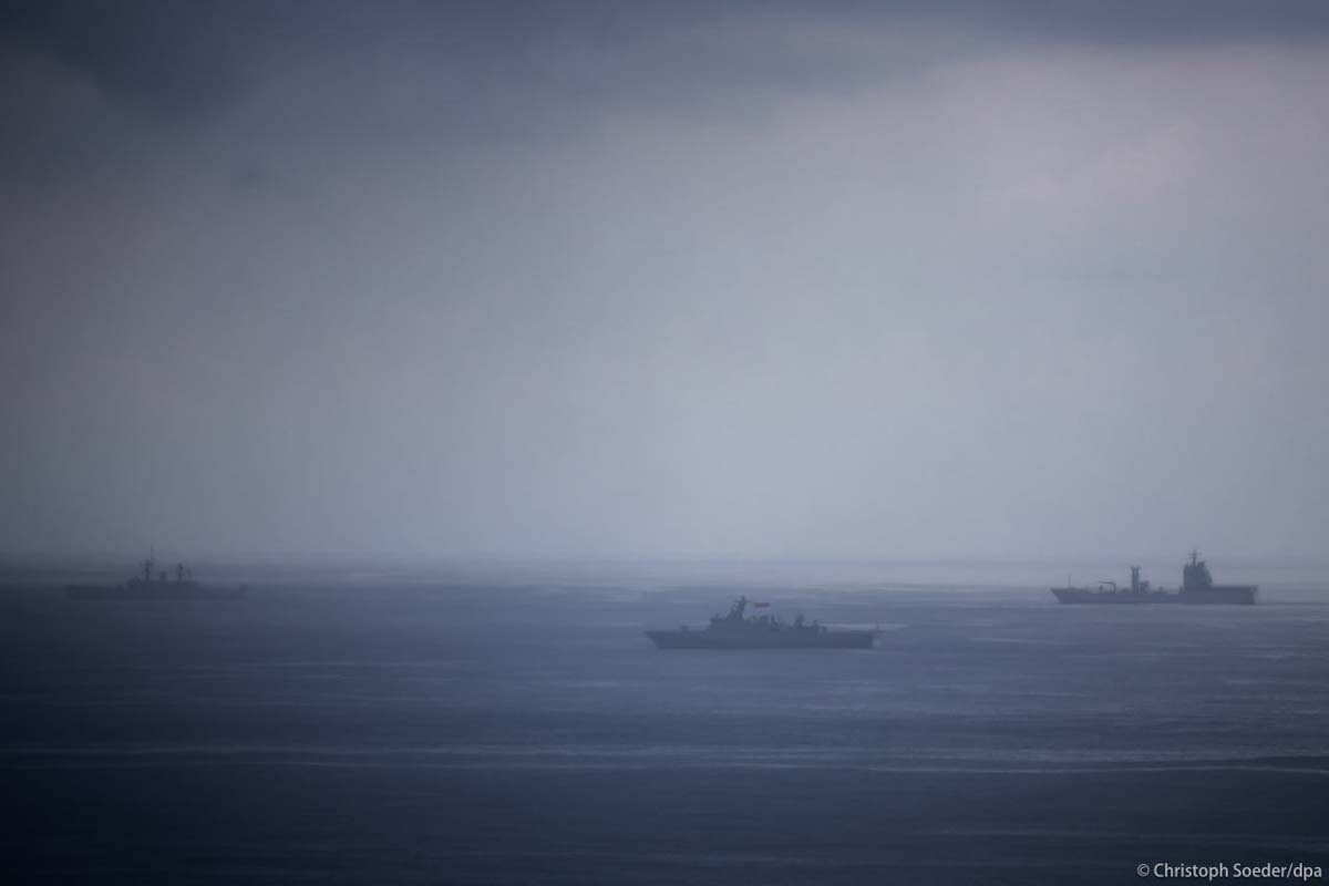 Indonesian marine ships are seen in front of the coast of Bali, where the G20 summit is held.