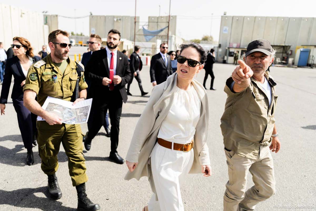 German Foreign Minister Annalena Baerbock visits Kerem Shalom border crossing at the triangle of the Gaza Strip, Israel and Egypt where humanitarian goods are being brought to the Gaza Strip.