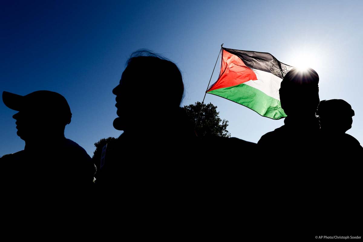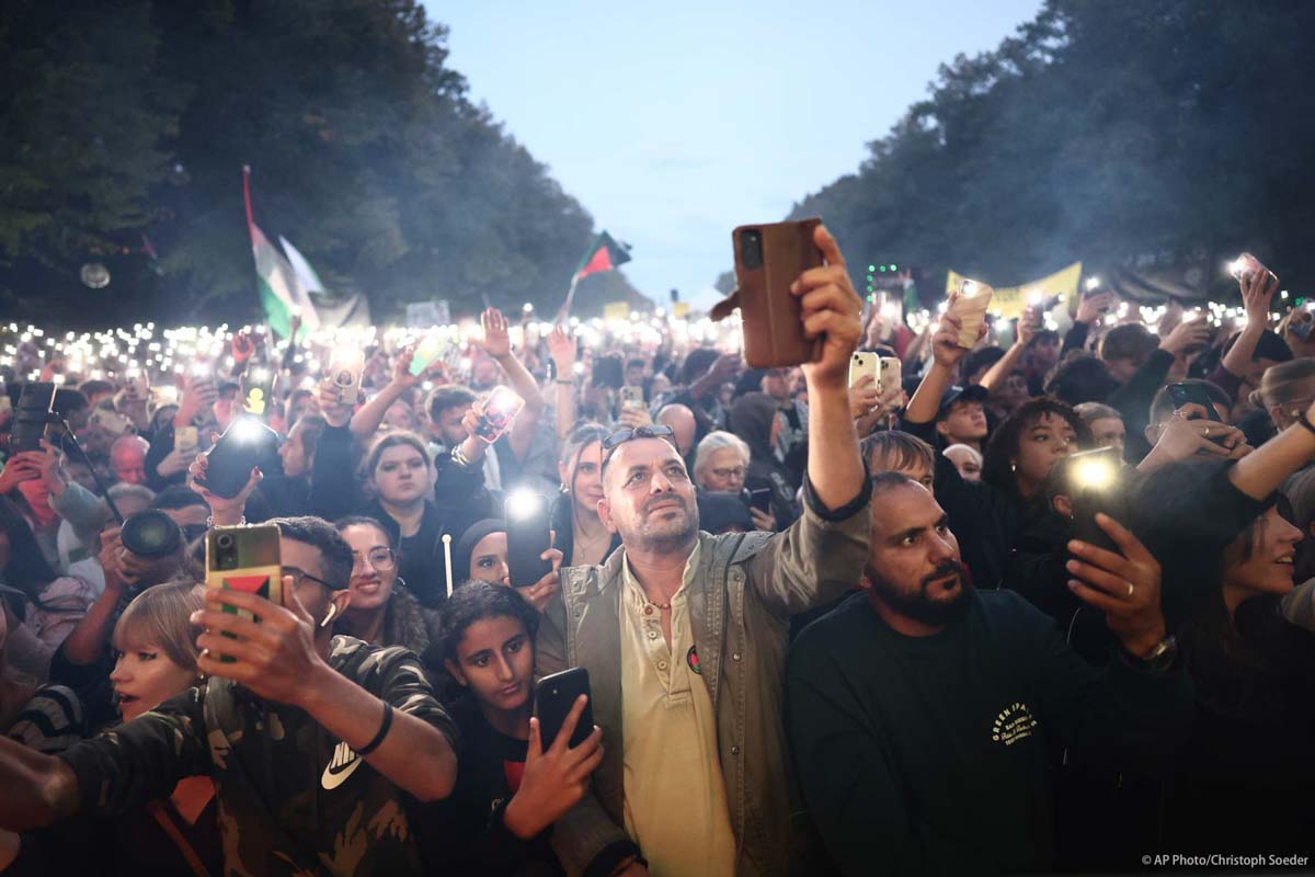 People protest against Israel during a mass demonstration called "All Eyes on Gaza" in support of Palestinians in Berlin.