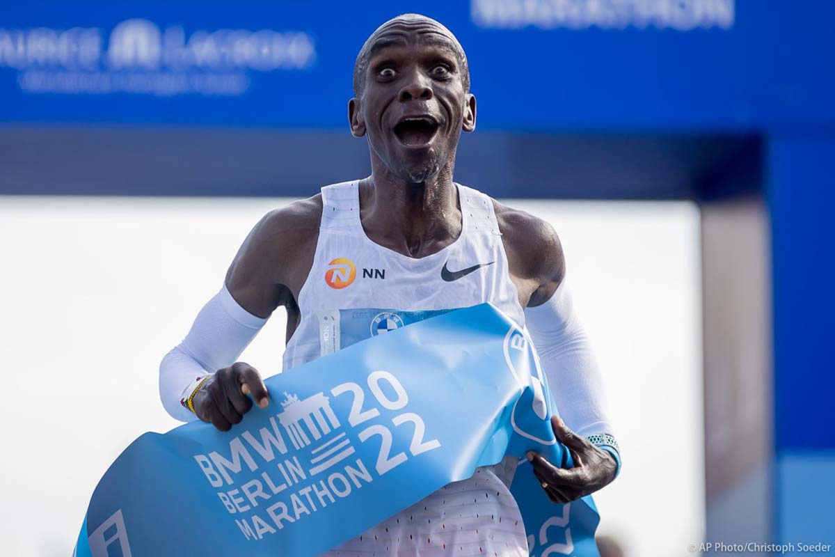 Kenya’s Eliud Kipchoge wins the Berlin Marathon in Berlin. Olympic champion Eliud Kipchoge has bettered his own world record in the Berlin Marathon. Kipchoge clocked 2:01:09 to shave 30 seconds off his previous best-mark of 2:01:39 from the same course in 2018.