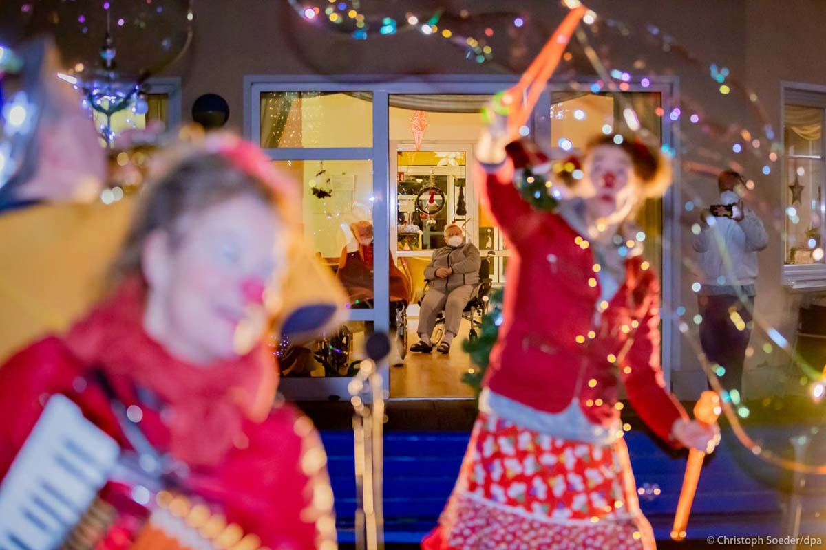 Clinic clowns of the Potsdam based association «Lachen hilft e.V.» perform for residents of a home for the elderly in Jüterbog.