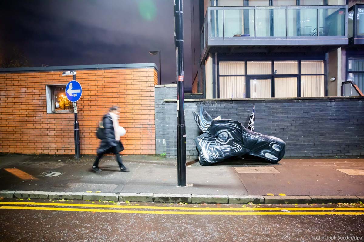 «Carbon Unicorn» (Symbol for a climate protection pretense) outside the COP26 U.N. Climate Summit in Glasgow venue