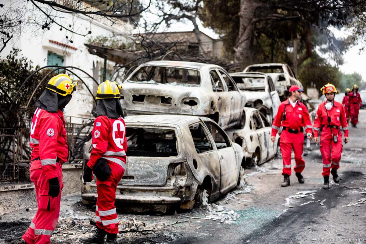 Members of the Greek Red Cross are seen in Mati. Leaving 100 dead the wildfire of July 2018 was the second-deadliest in the 21st century.
